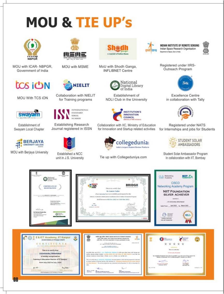 J.S. University, Shikohabad now registered under NATS, A Govt. of India initiative to provide Internships in MSME’s in all over India.